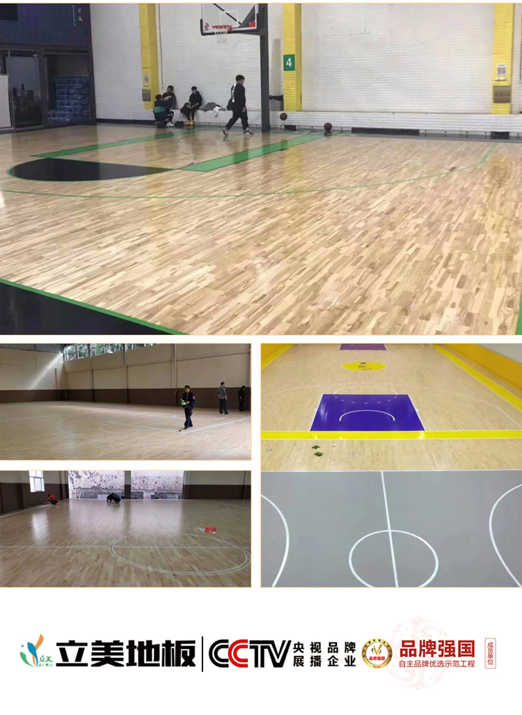 - 防滑耐磨双保障:表面采用立美自主研发的 “哑光聚氨酯耐磨漆”,经 3 遍底漆 + 2 遍面漆喷涂,漆面厚度达 0.35mm,耐磨转数超 6000 转(远超行业 5000 转标准);同时漆面纹理保留柞木天然木纹的细微凹凸感,摩擦系数稳定在 0.5-0.6(符合国际篮联 FIBA 标准),既避免运动员急停时打滑,又不会因表面过糙磨损鞋底,平衡防滑与耐磨性能。