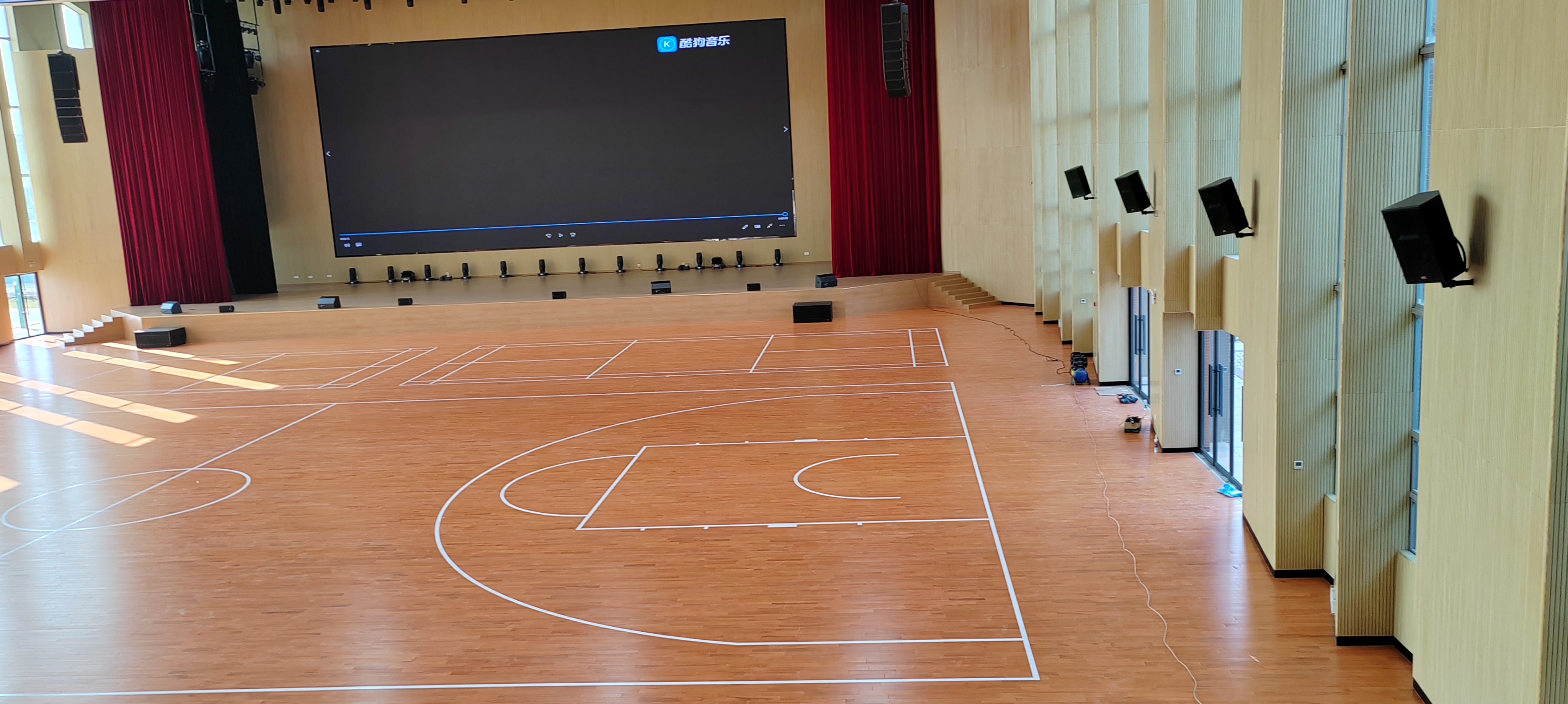 工艺方面,立美木地板引入国际先进设备与技术,采用德国力格勒打磨机对地板表面进行精细打磨,确保每一块地板都拥有光滑平整的表面,提升运动时的脚感舒适度。同时,选用瑞典 BONA 博纳地板水性漆进行表面涂装,这种漆料不仅环保无异味,还能增强地板的耐磨性与光泽度,让地板在长期使用后依旧保持良好外观。在篮球馆木地板的结构设计上,立美推出双层龙骨篮球实木地板,搭配篮球木地板减震垫,通过双层龙骨的稳定支撑与减震垫的缓冲作用,大幅提升地板的回弹力,实现回弹力十足的运动效果,有效减少运动员跳跃落地时的腿部冲击力,降低运动损伤风险。